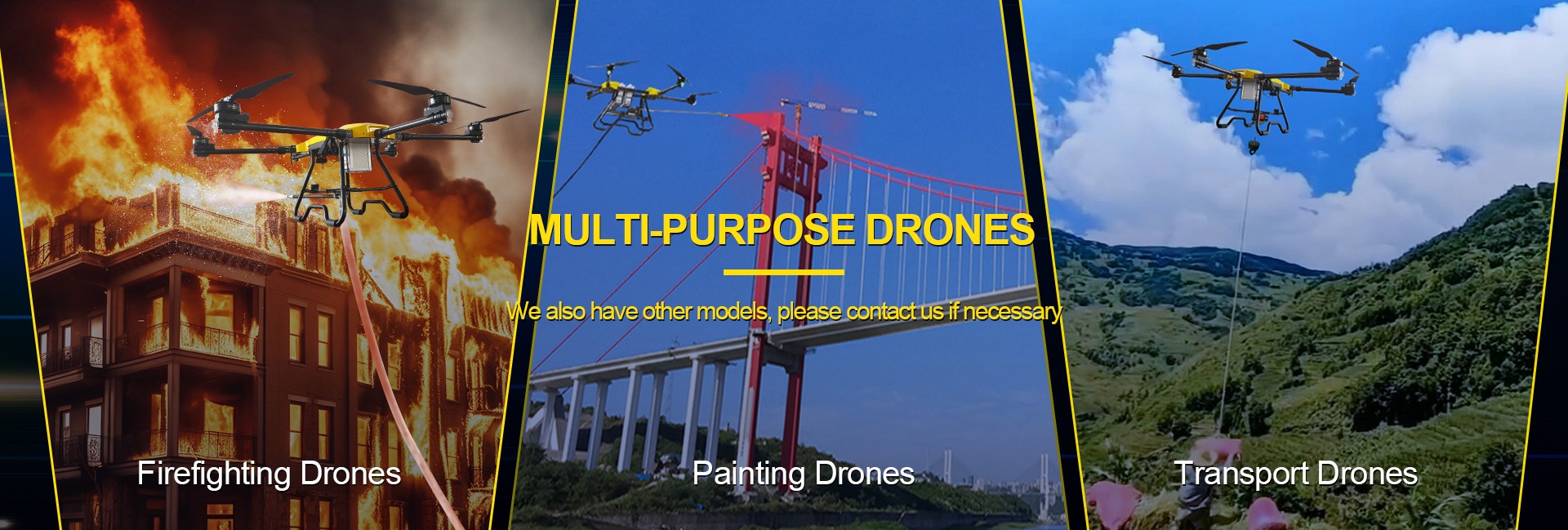 Our sprayer drones, spreading drones, fogger drones, and biological control drones are widely used in agricultural spraying, seeding, pest control, and public disinfection. After several years of development, we have expertly designed 10 liters, 20 liters, 30 liters, 40 liters, 50 liters capacity sprayer drones, hybrid drone, cleaning drones with approximately 200 units of production per month. The drones undergo 100% indoor and flight tests to ensure they are qualified and ready to fly before delivery.
